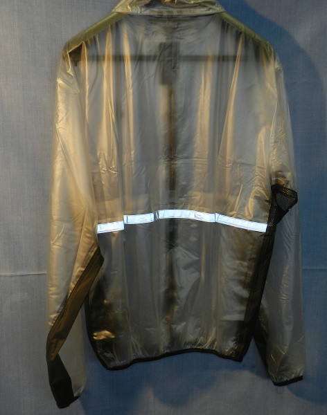 PVC pláštěnka, průhledný design, lycra zápěstí, ventilace v podpaží a bocích.