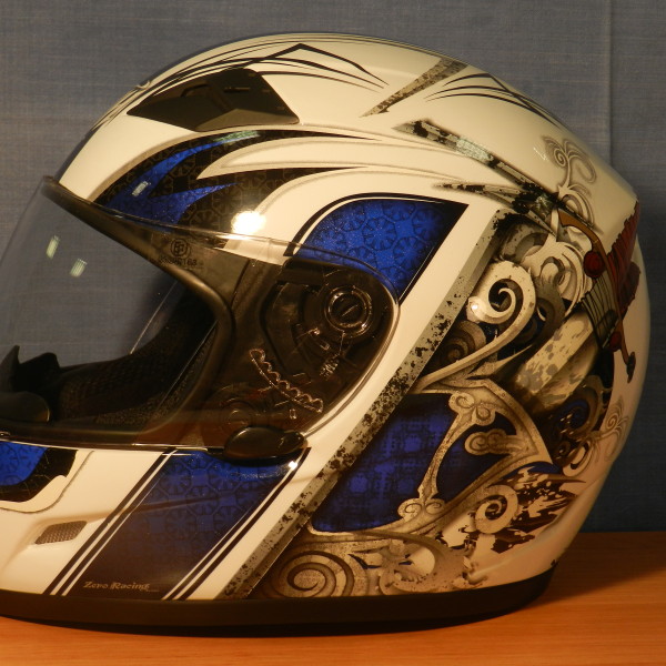 Kvalitní integrální moto helma s agresivním designem. Odlehčená polykarbonátová skořepina s pohodlným a dobře odvětraným interiérem zamezujícím přehřívání a zamlžování visoru. Do helmy je dokonale přiváděn vzduch díky čelnímu a bradovému sání, doplněným zadním extraktorem zabudovaným ve spoileru. Zadní spoiler optimalizuje aerodynamické proudění okolo helmy a omezuje hluk i únavu jezdce.