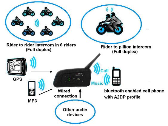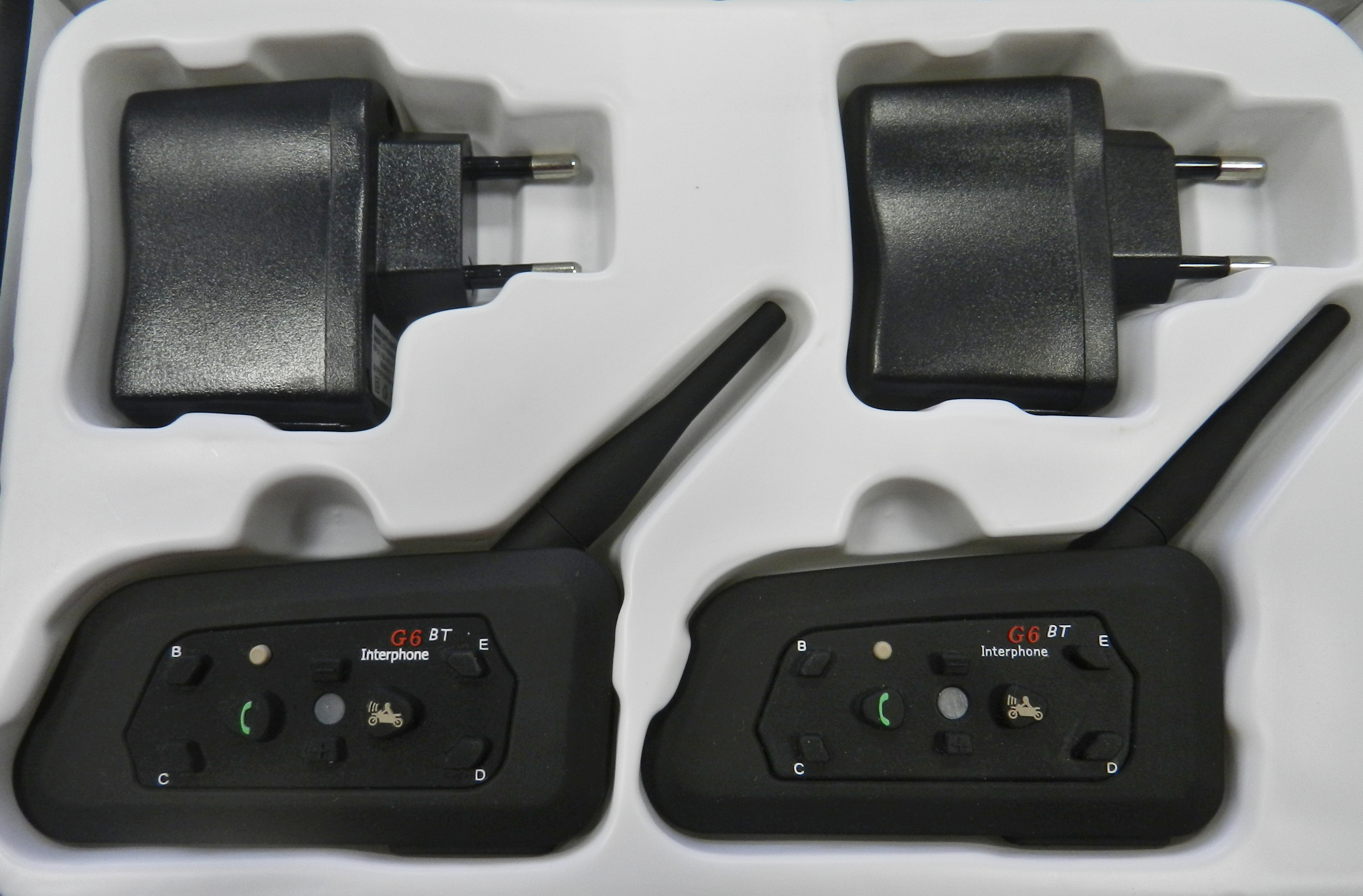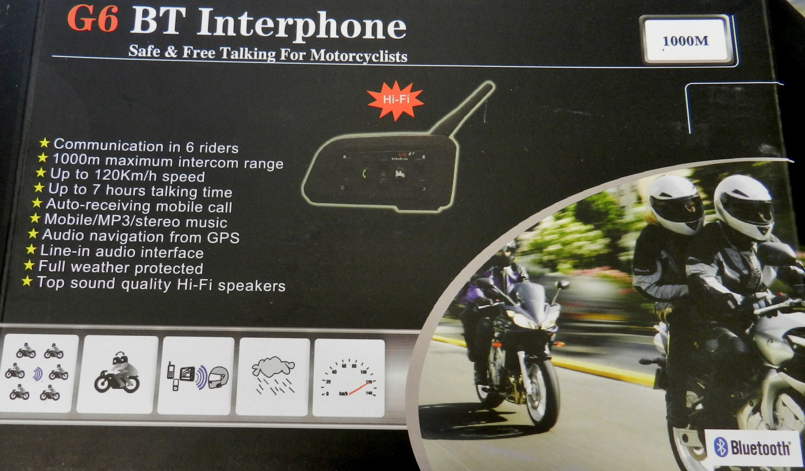 Interkom G6BT Bluetooth je univerzální intercom na moto, použitelný na jakoukoli integrální, výkloponou nebo otevřenou helmu. G6BT Interkom je určený pro komunikaci se spolujezdcem nebo až 6 dalšími motocykly s dosahem až 1000m. Interkom G6BT je nástupcem úspěšného modelu interkomu 6RMI Bluetooth.
