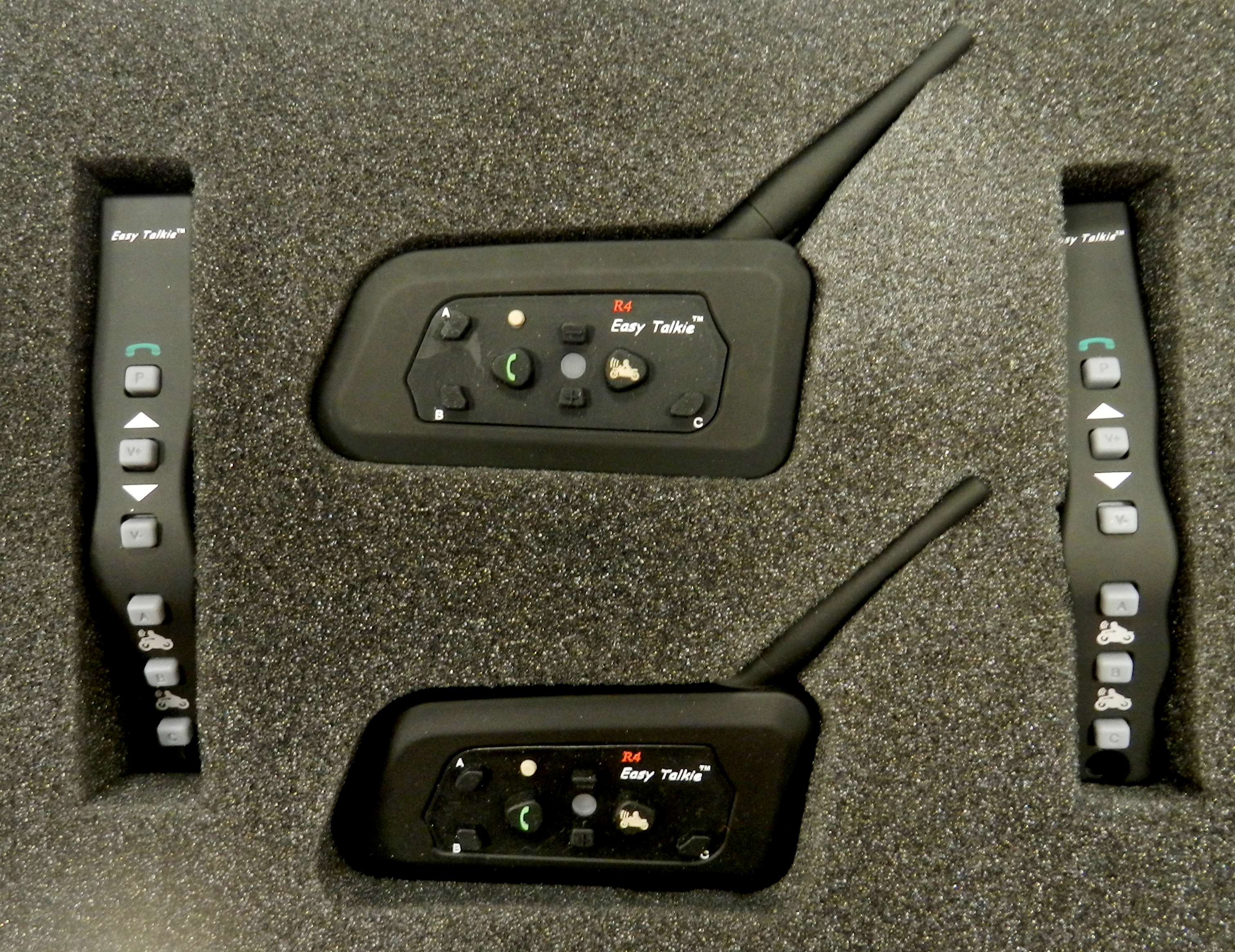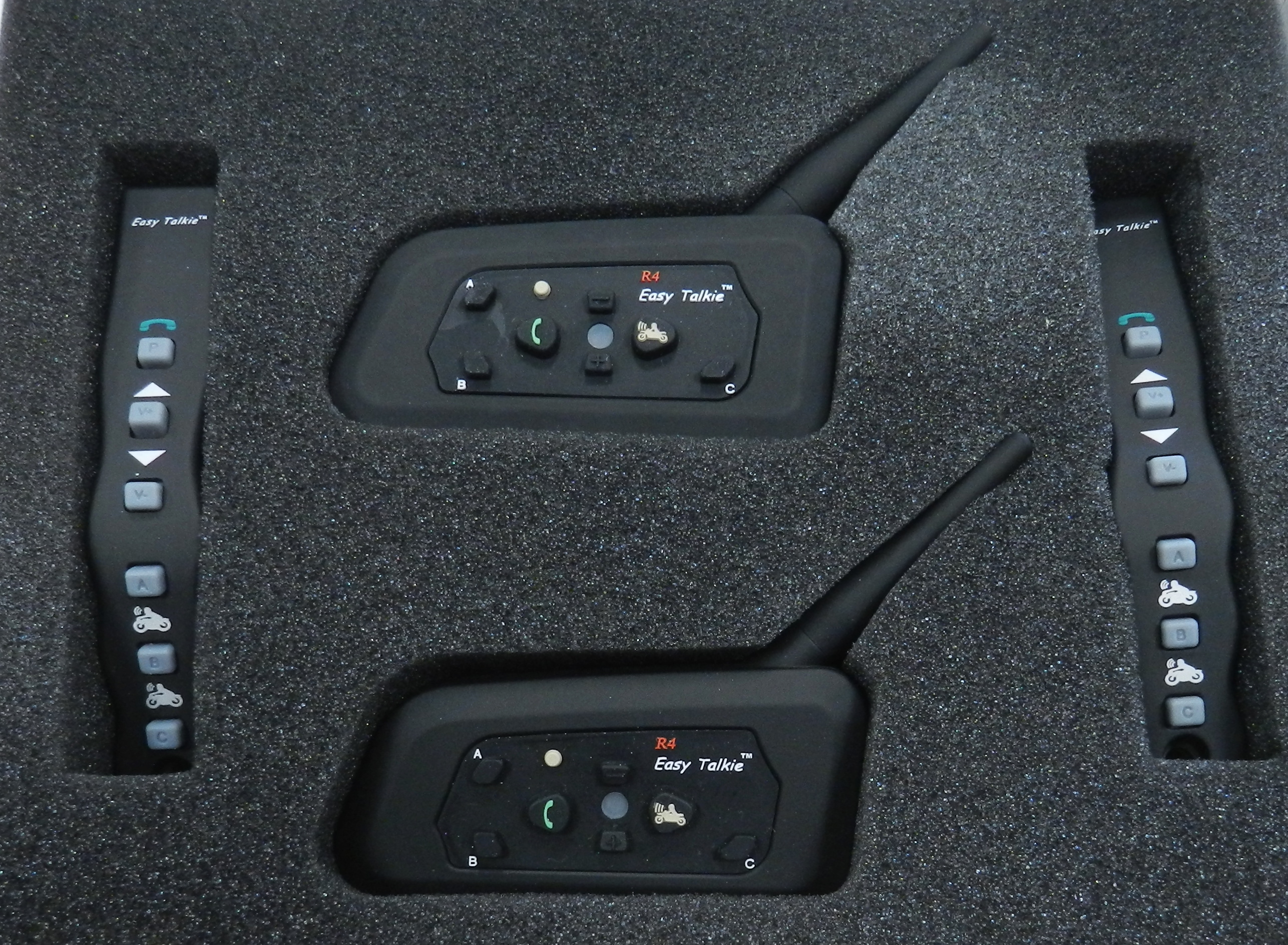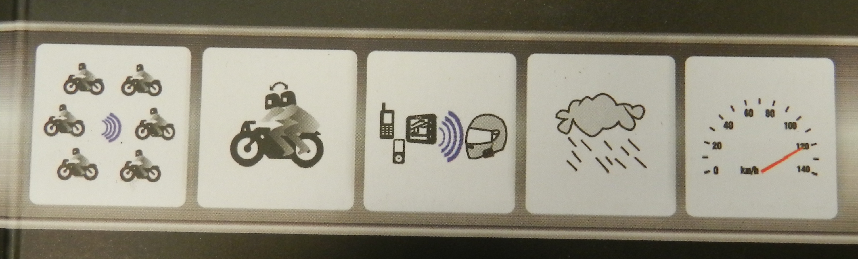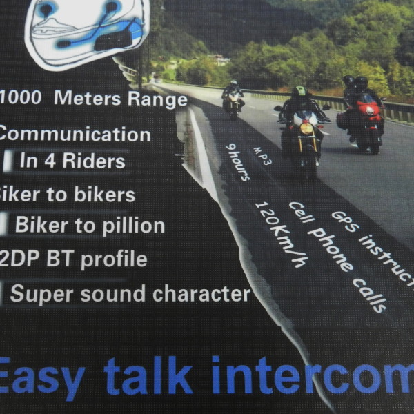 Dva Bluetooth komunikátory, možnost komunikace se spolujezdcem nebo až 4 dalšími motocykly s dosahem až 1000 m, bezdrátový ovladač s úchytem na řidítka.